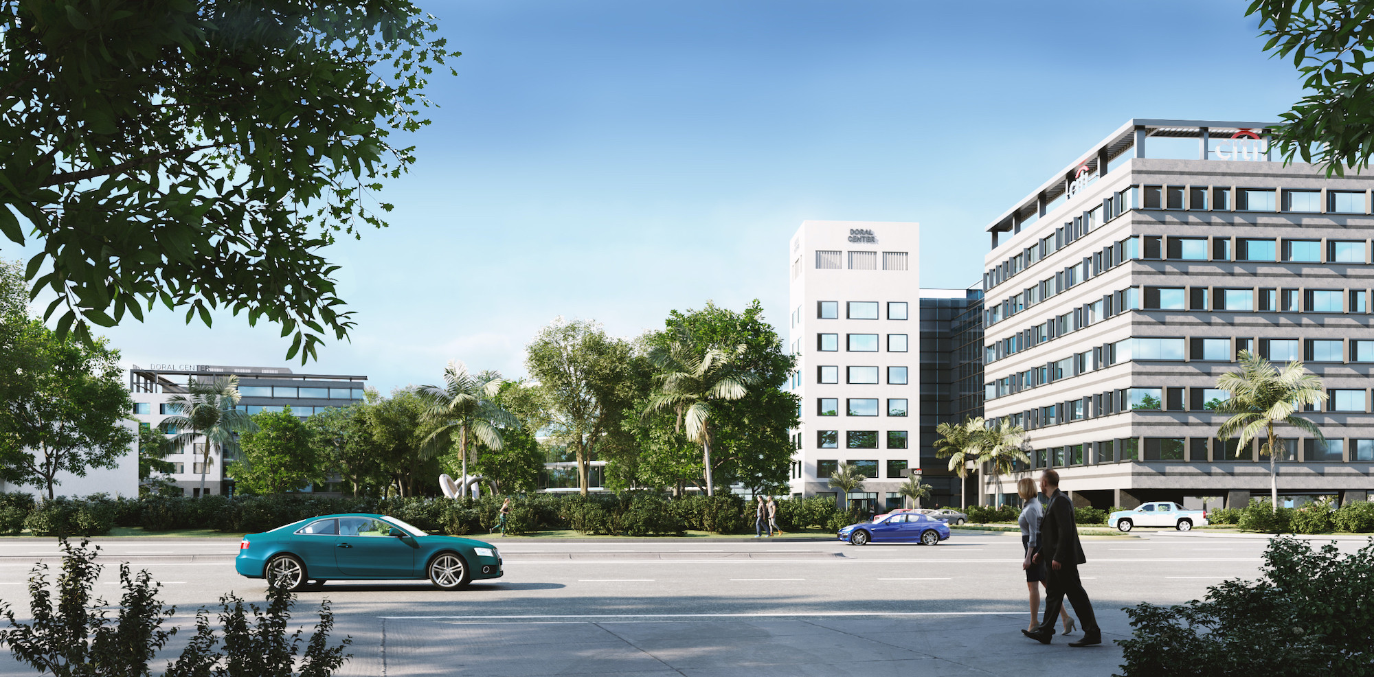 Situated at the “Main & Main” intersection of Miami’s rapidly growing City of Doral, Doral Center is a premier, 290,000 square foot office complex comprising of two Class A office buildings. With a rich amenity base in the heart of the city’s live-work-play urban corridor, Doral Center exhibits convenience, functionality, class and value. Its central location provides exceptional access to Miami International Airport, as well as convenient connectivity to three of Miami-Dade County’s busiest highways. Doral Center recently completed renovations, which include a covered parking garage, exterior improvements, new modern landscaping, speculative suites and renovated corridors and restrooms.